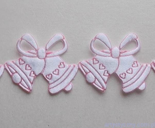 Promocje:Tasiemka aplikacyjna Dzwonki Dzwoneczki Białe z czerwonym brzegiem 2,5cm - 30szt