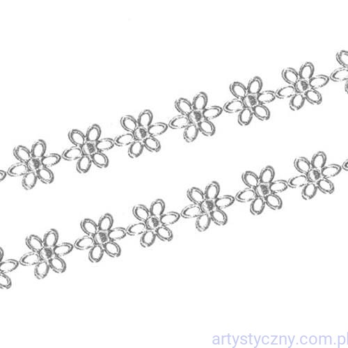 Połyskujące, metaliczne aplikacje na taśmie, ażurowe kwiatki 17 mm