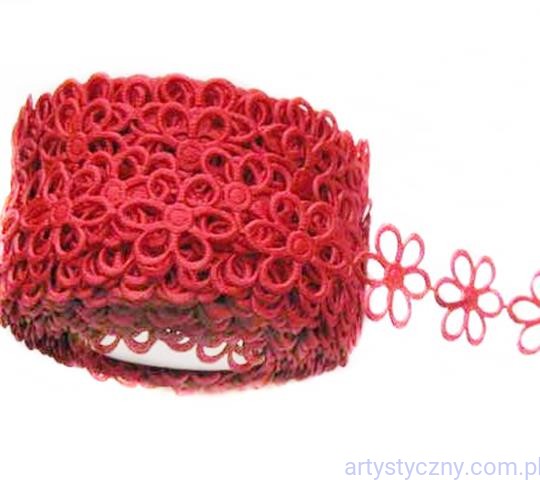 Atłasowe aplikacje na taśmie, ażurowe kwiatki 20 mm
