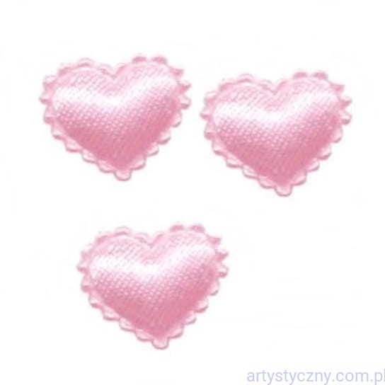 Atłasowe aplikacje, mini serduszka z falbanką, wypełnione cienką gąbką, dzięki czemu są przestrzenne.