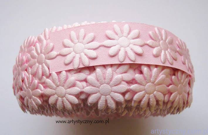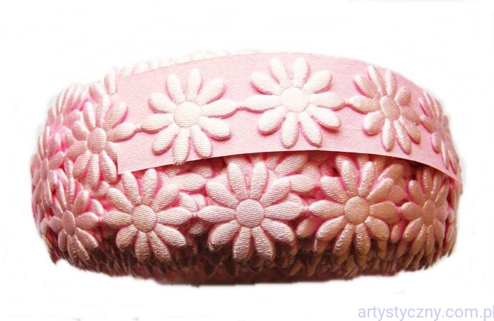 Atłasowe aplikacje na taśmie, kwiatki margaretki 20 mm