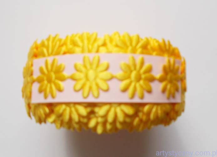 Wykorzystasz do ozdabiania tkanin, przedmiotów użytku domowego oraz w pracach kreatywnych typu scrapbooking, cardmaking, czyli po polsku, w ozdabianiu kartek okolicznościowych, albumów, zaproszeń, pudełek i innych. Taśma z z kwiatkami może być naszywana na tkaniny i naklejana na różne przedmioty.