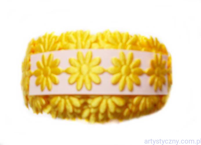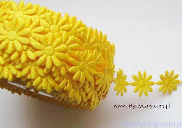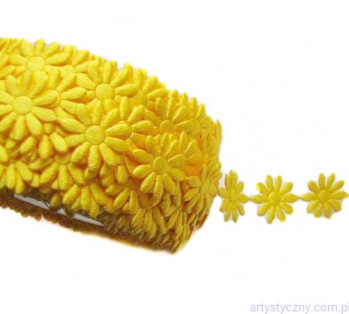 Atłasowe aplikacje na taśmie, kwiatki margaretki 20 mm