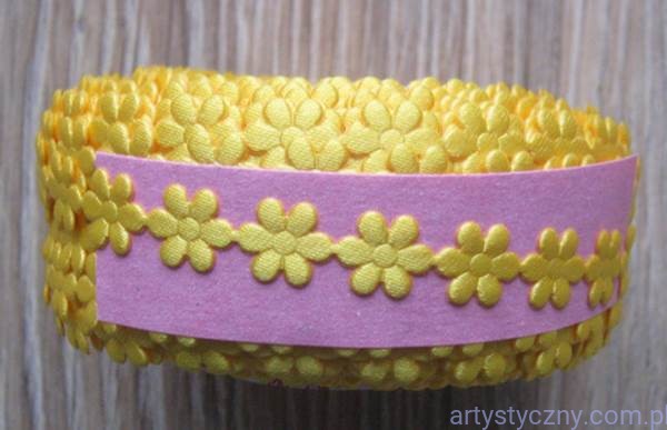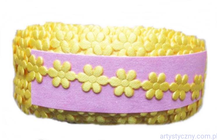 Wykorzystasz do ozdabiania tkanin, przedmiotów użytku domowego oraz w pracach kreatywnych typu scrapbooking, cardmaking, czyli po polsku, w ozdabianiu kartek okolicznościowych, albumów, zaproszeń, pudełek i innych. Taśma z z kwiatkami, stokrotkami, może być naszywana na tkaniny i naklejana na różne przedmioty.