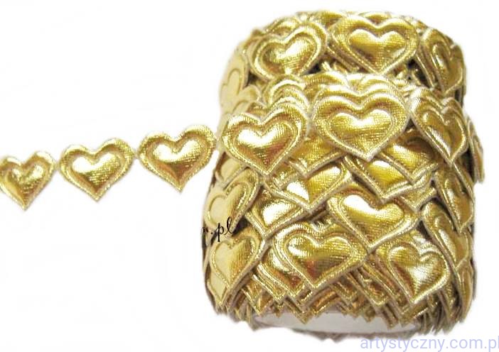 Promocje:Aplikacje na taśmie Złote Metaliczne Serca Serduszka 1,8 cm ~ 50 sztuk