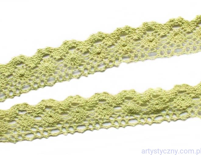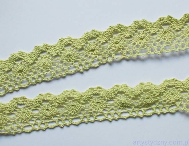 bawełniana koronka klockowa w kolorze pistacjowym, o szerokości 30 mm - zamawiasz 1 metr koronki