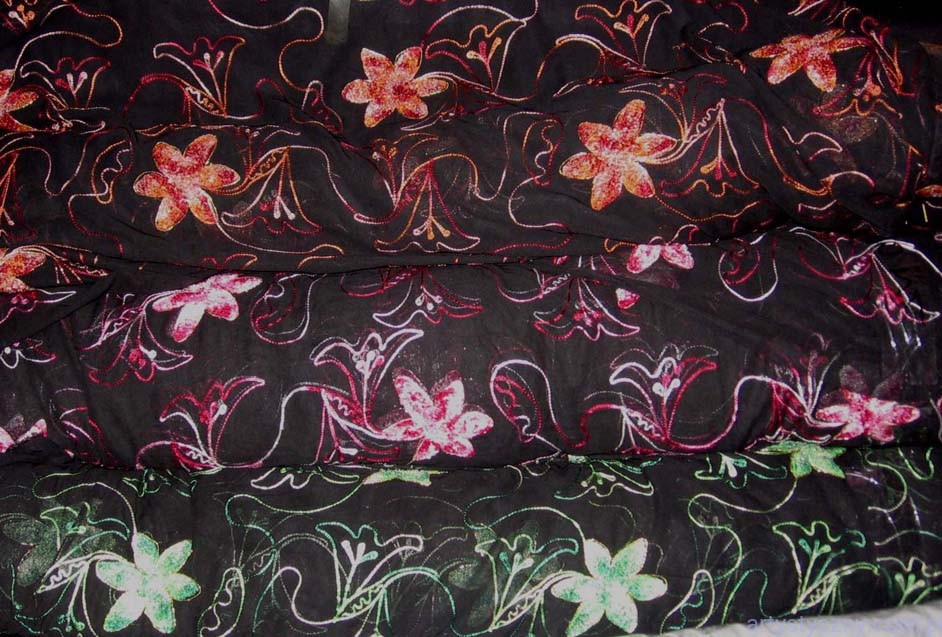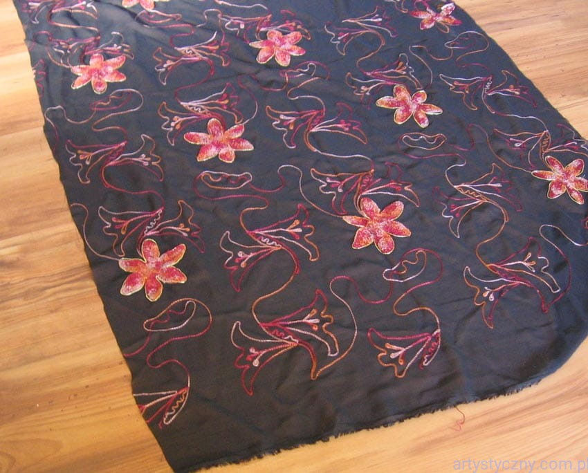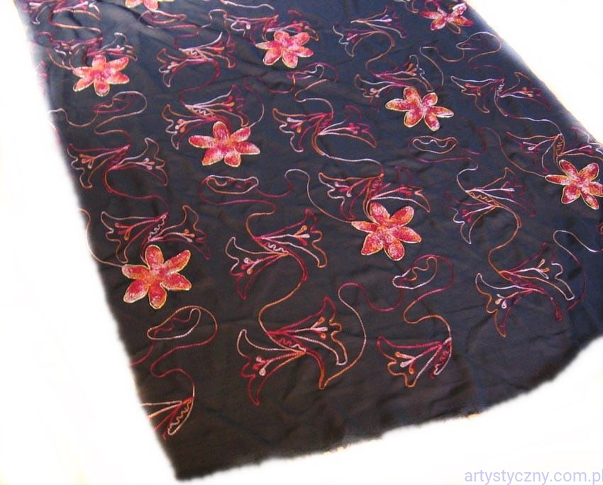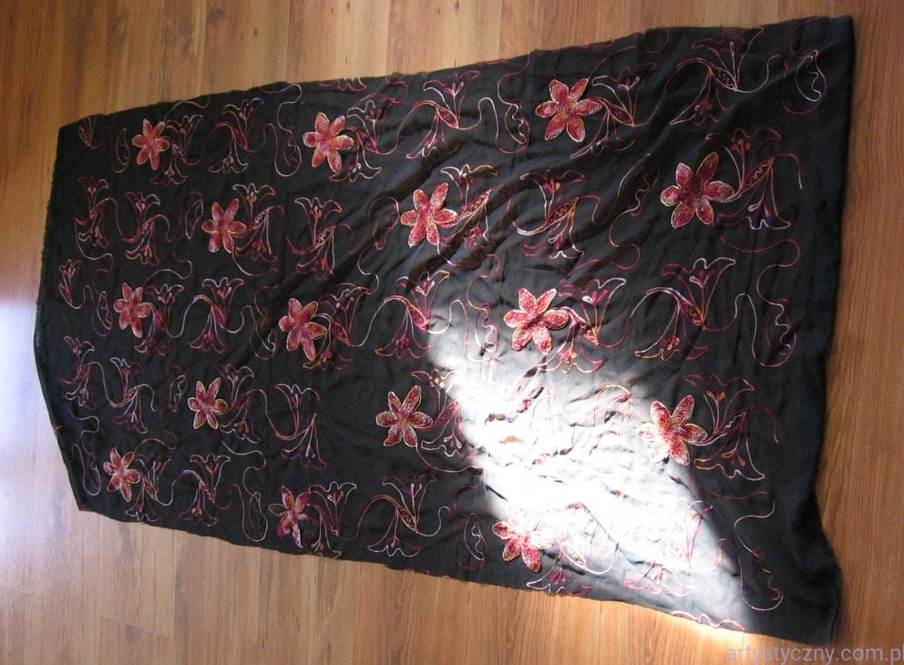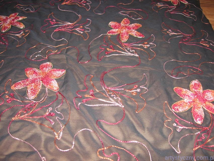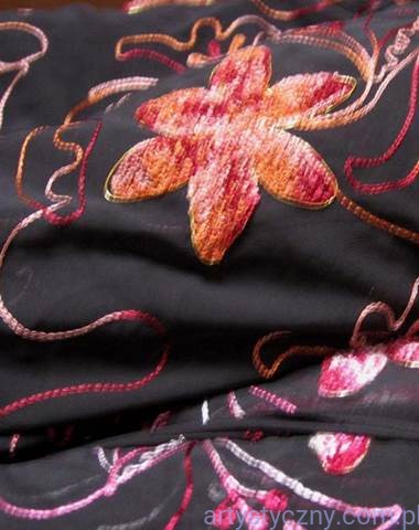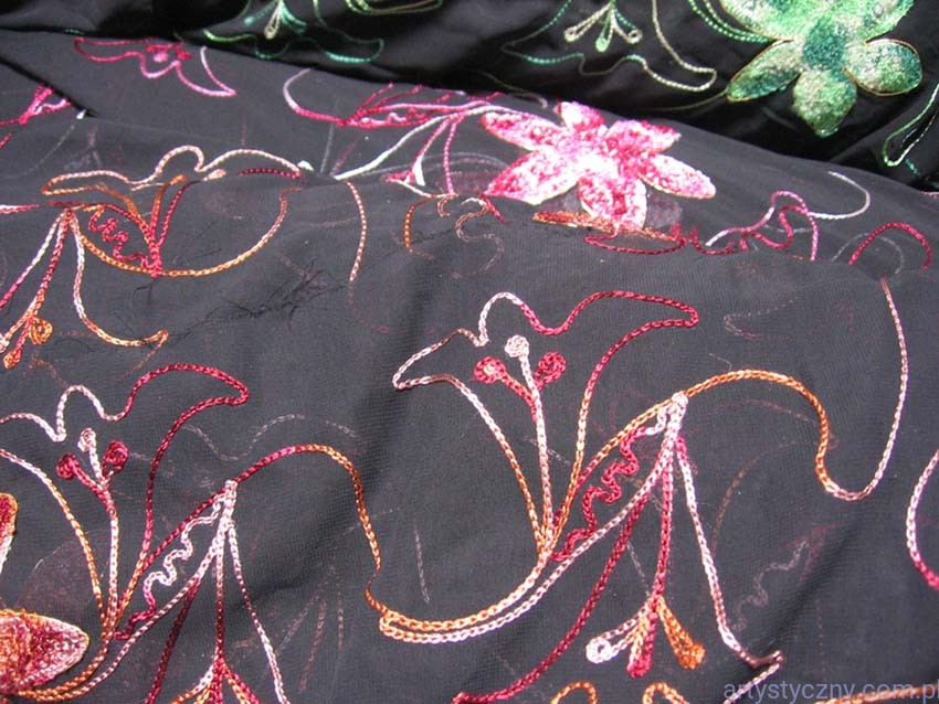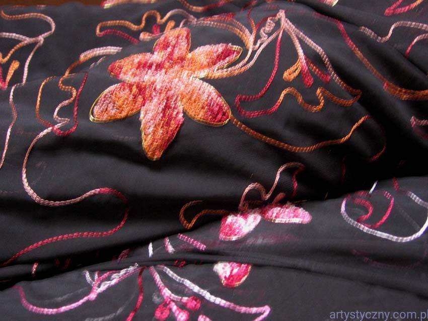 Promocje:Czarny Tiul Haft - Pomarańczowe Kwiaty - 200x150cm