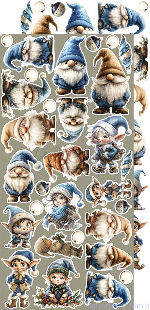 Zestaw 9 arkuszy wysokiej jakości dwustronnego papieru do scrapbookingu z dodatkami do samodzielnego wycięcia - 6 wzorów (1/2 oryginalnego zestawu). Rozmiar każdego arkusza: 15,5 x 30,5 cm. Gramatura papieru: 250g/m2.