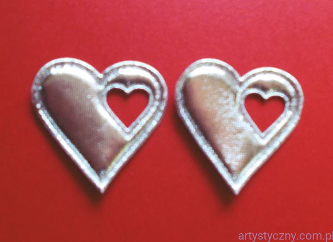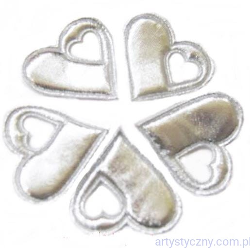 Duże połyskujące aplikacje serca z wyciętym serduszkiem, wypełnione cienką gąbką, dzięki czemu to ozdoby 3D, które mają więcej zastosowań. Możesz użyć ich nie tylko do naklejania lub naszywania ale też jako na przykład kotyliony lub zawieszki.