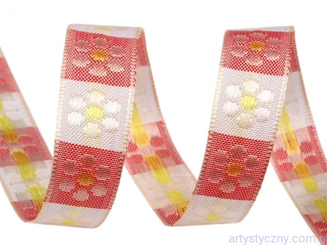 Ekskluzywna Wstążka Żakardowa 3 m - Różowe Kwiatki