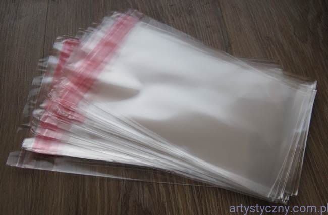 Woreczki foliowe z krystalicznego celofanu, stosowane jako opakowania na koperty i kartki, zamykane paskiem klejącym