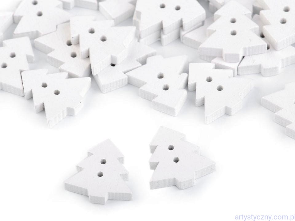 Guziki drewniane dekoracyjne Białe Choinki - 10 sztuk