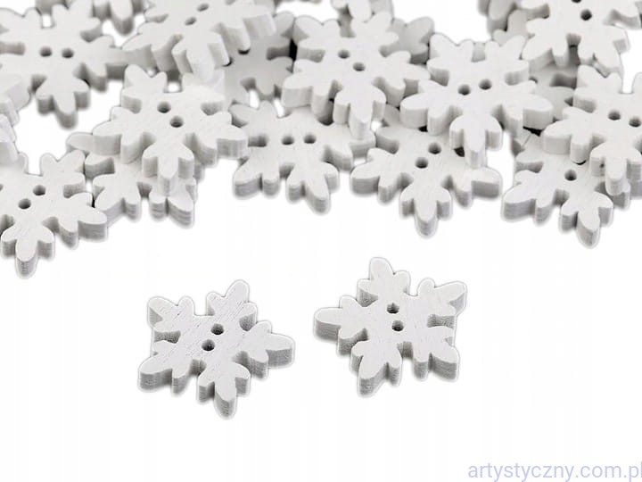 Guziki drewniane dekoracyjne Białe ŚNIEŻYNKI - 10 sztuk