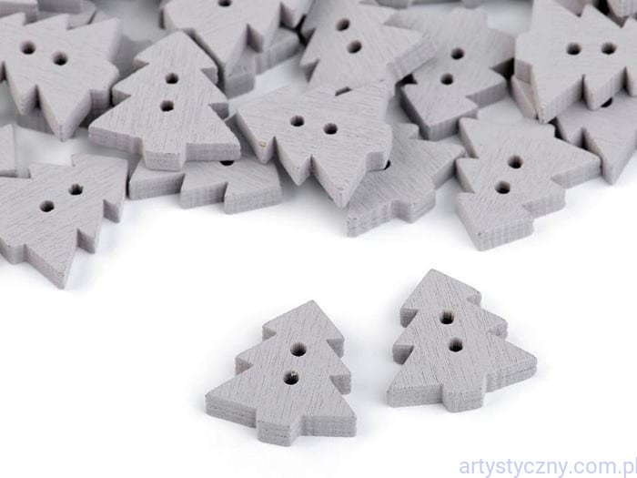 Drewniane guziki z dwoma dziurkami w kształcie choinek. Użyjesz ich w scrapbookingu, do ozdabiania ramek, kartek, winietek, zaproszeń, pamiętników itp. Nie zaleca się ich prać.