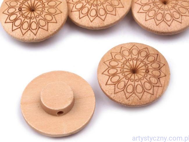 Zestaw plastikowych guzików o średnicy 2 cm stylizowanych na drewniane, z wyciętym wzorkiem