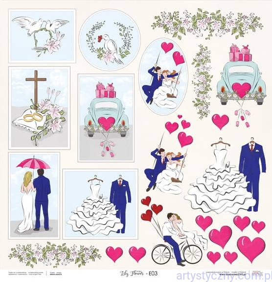 Promocje:Lily Flower - Ślub - Arkusz dodatków do wycięcia 30x30cm - Laserowe LOVE