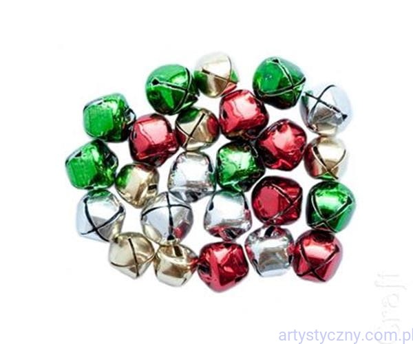 Metalowe zawieszki w kształcie dzwoneczków w czterech kolorach: złotym, srebrnym, czerwonym i zielonym