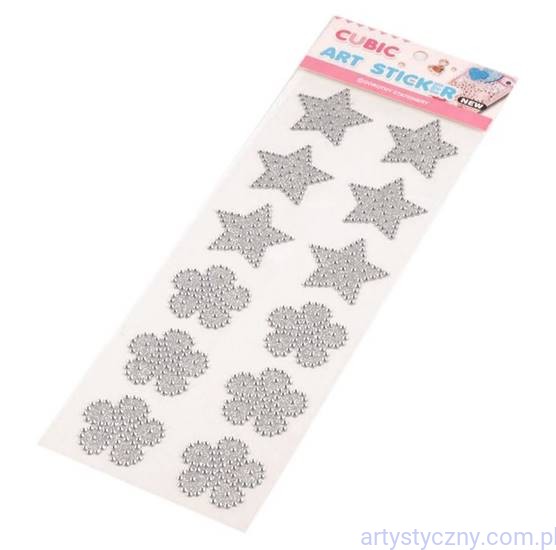 Każda naklejka składa się z zestawu błyszczących kamieni na brokatowej naklejce. Naklejki naklejone są na arkuszu z transparentnej, plastikowej folii.