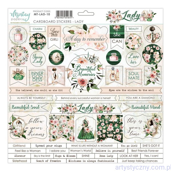 Promocje:Naklejki tekturowe - Mintay - LADY - 30x30cm angielskie napisy