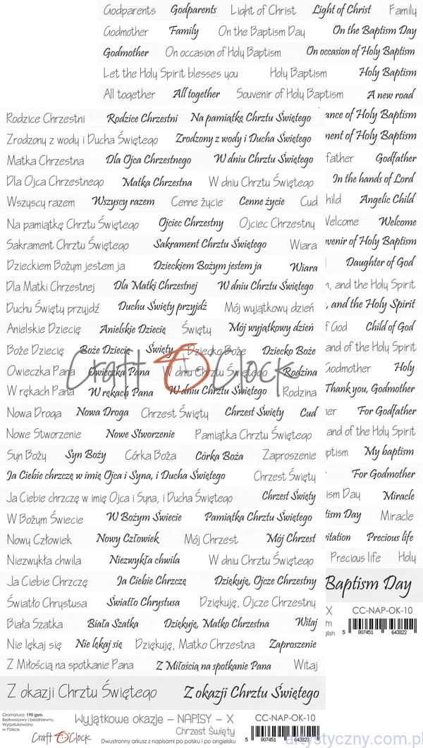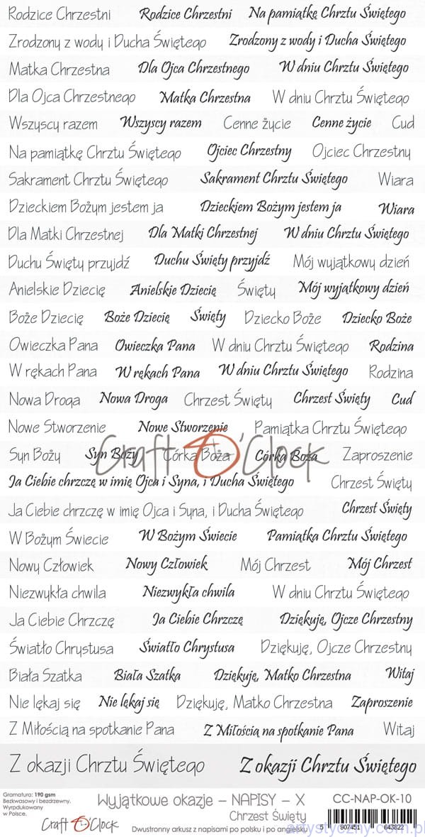 Arkusz z NAPISAMI - 190g - 15,5 x 30,5 cm - dwustronny arkusz z napisami, z jednej strony po polsku, z drugiej po angielsku.