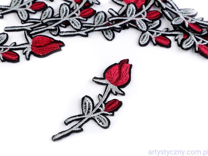 Naprasowanka z pąkami róż i precyzyjnym haftem komputerowym.