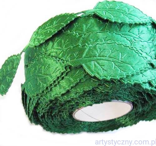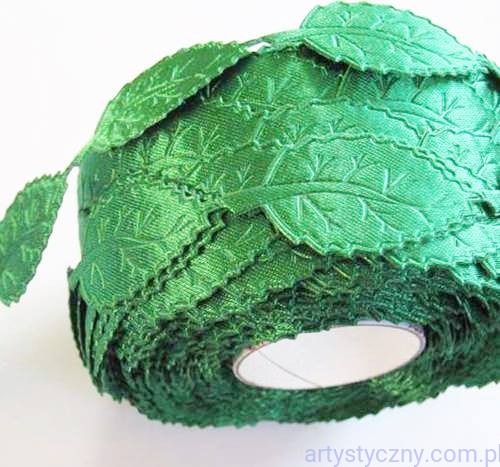 Satynowe aplikacje taśma aplikacyjna Liście Listki podłużne 20szt - Zielone