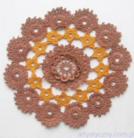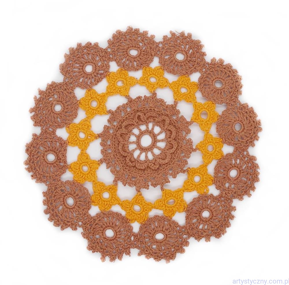 Serwetka Koniakowska - Brązowo-Pomarańczowa - rękodzieło