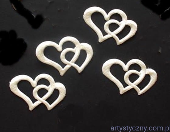 wyjątkowo gustowne atłasowe aplikacje - splecione ażurowe serca, które wykorzystasz do tworzenia kartek, zaproszeń ślubnych, bilecików, winietek, albumów, możesz je również naszywać lub naklejać na tkaniny
