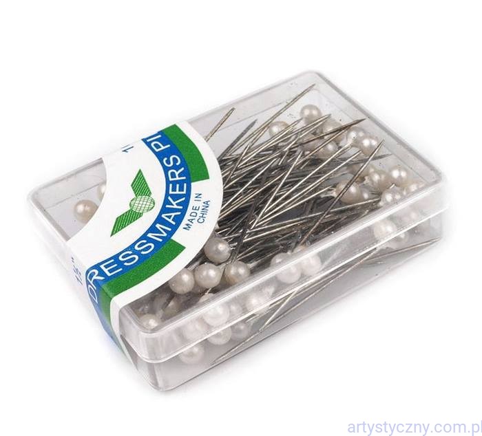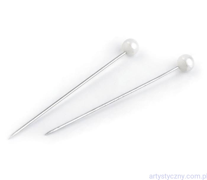Dekoracyjne szpilki z perłową główką o średnicy 3-4 mm.