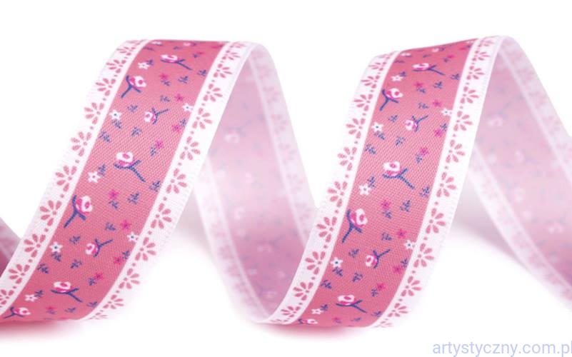Promocje:Tasiemka Satynowa 25mm - Różowa w Kwiaty - 3 metry