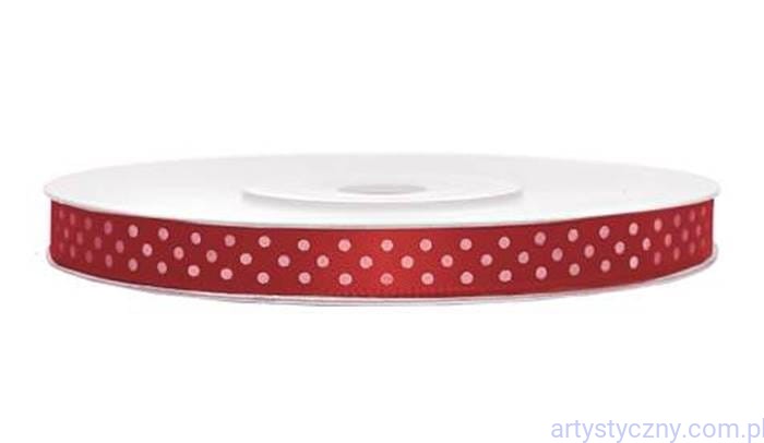 Tasiemka Satynowa 6mm - Czerwona w Kropki - 25 metrów