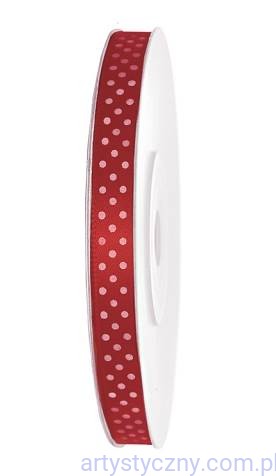 Tasiemka atłasowa w kropeczki o szerokości 6 mm i długości prawie 25 metrów