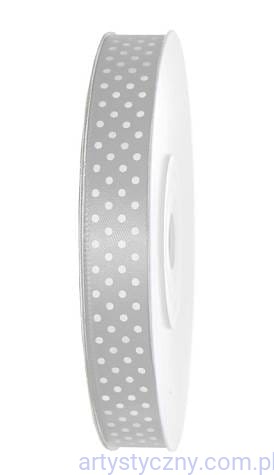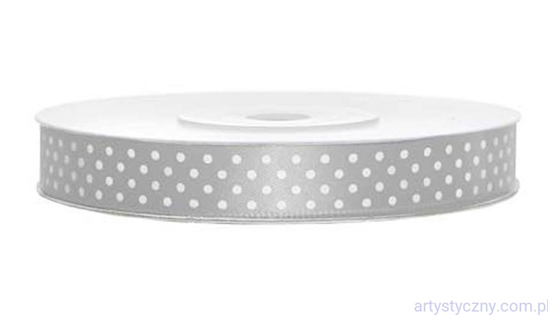 wysokiej jakości wstążka atłasowa o szerokości 12mm - srebrna w kropeczki