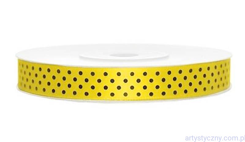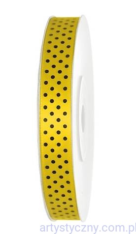 wysokiej jakości wstążka atłasowa o szerokości 12mm - żółta w kropeczki