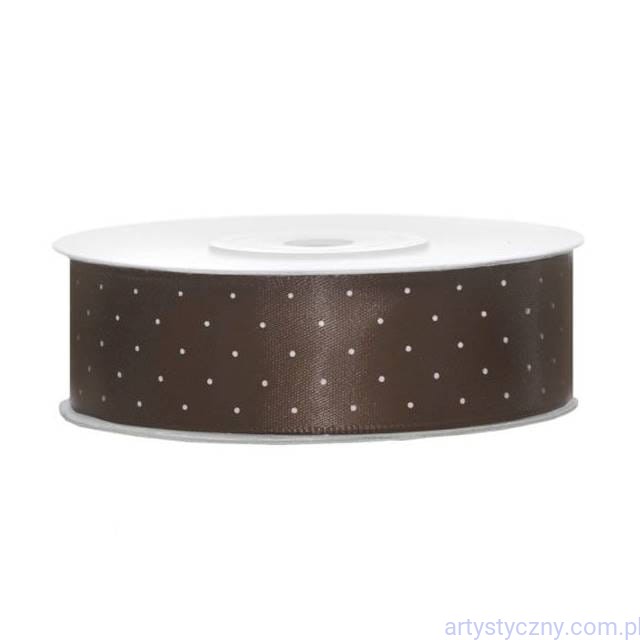 wysokiej jakości wstążka atłasowa o szerokości 25mm - brązowa w kropeczki