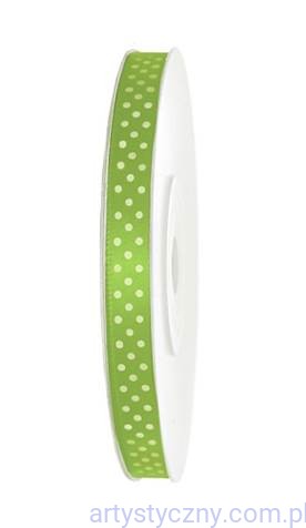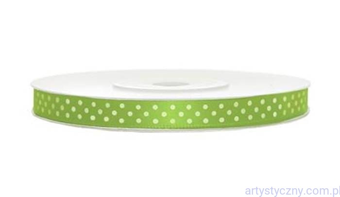 Tasiemka Wstążka Satynowa 6mm - Młoda Zieleń w Kropki - 3 metry