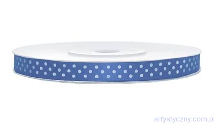 Tasiemka Wstążka Satynowa 6mm - Niebieska w Kropki - 3 metry