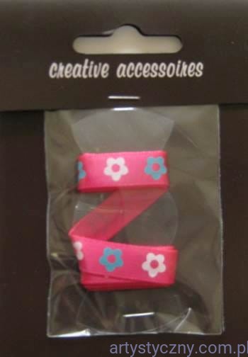 Tasiemka Wstążka Satynowa - Różowa w Kwiatki nr 13