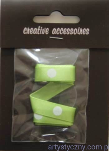 Tasiemka Wstążka Satynowa- Zielona Grochy Kropki 3