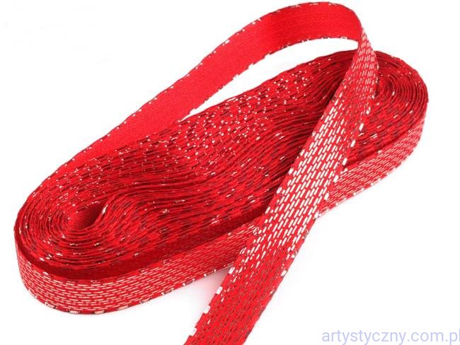 Tasiemka Wstążka z Lureksem Czerwona 12mm ~ 10 metrów