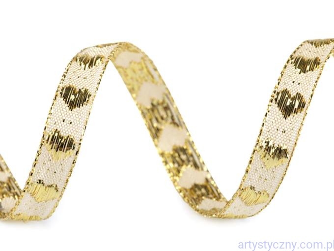 Wstążka Tasiemka Metalizowana Kremowo-Złota - Serca - 3 metry