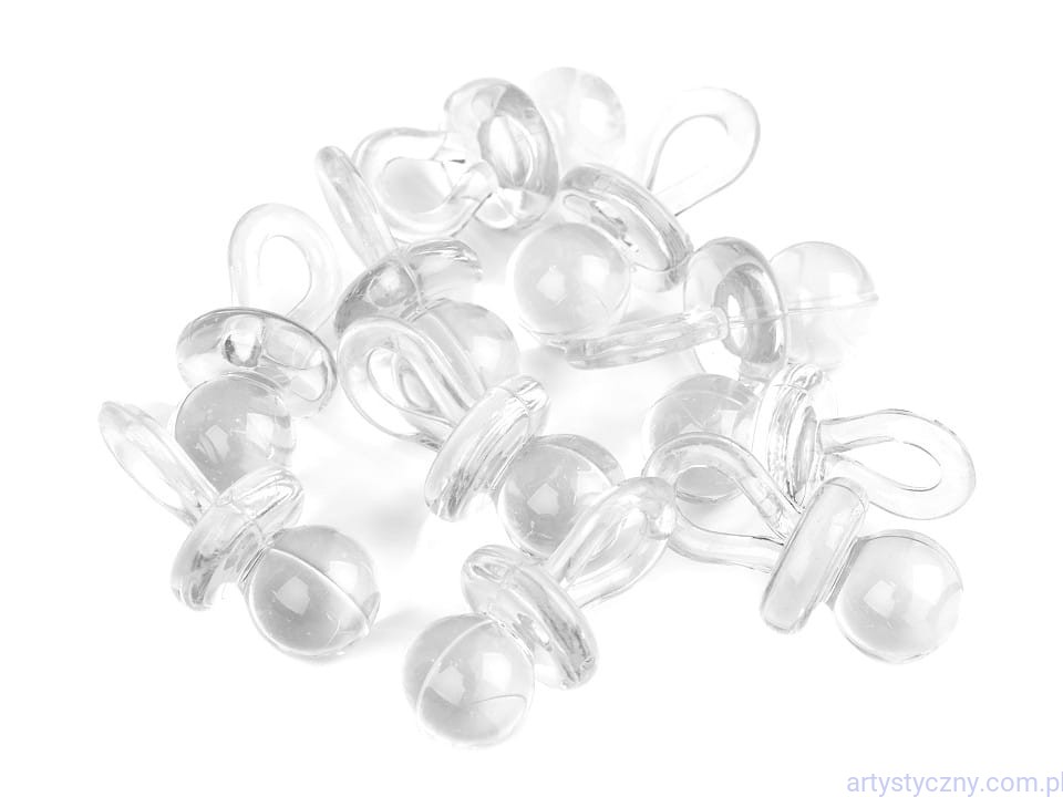 Przezroczysty plastikowy smoczek, który wykorzystasz jako dekoracji na prezenty, ozdoby na przyjęcie z okazji narodzin dziecka itp. Można przez nie przewlec wstążkę lub sznurek.