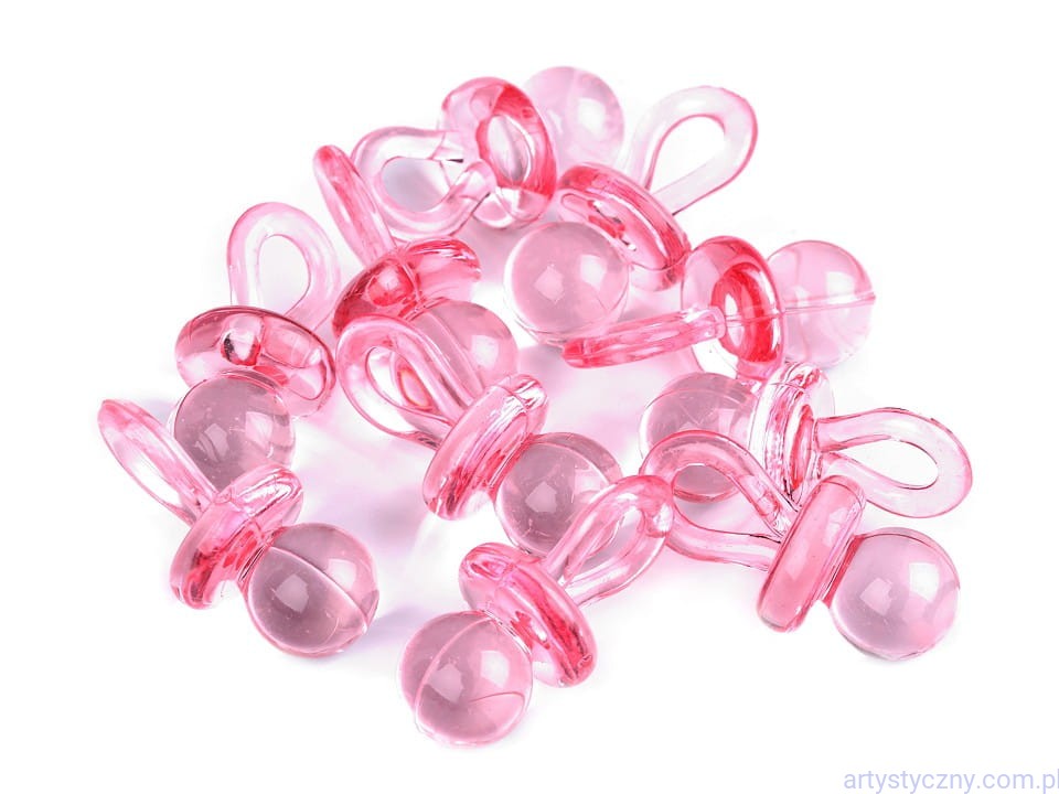 Przezroczysty plastikowy smoczek, który wykorzystasz jako dekoracji na prezenty, ozdoby na przyjęcie z okazji narodzin dziecka itp. Można przez nie przewlec wstążkę lub sznurek.