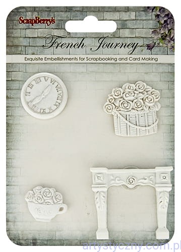Promocje:Zestaw ozdób z masy polimerowej - French Journey - zegar toaletka róże